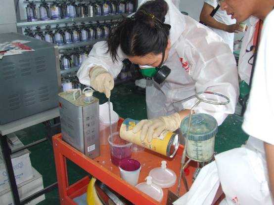 老師們進行調(diào)漆練習(xí)