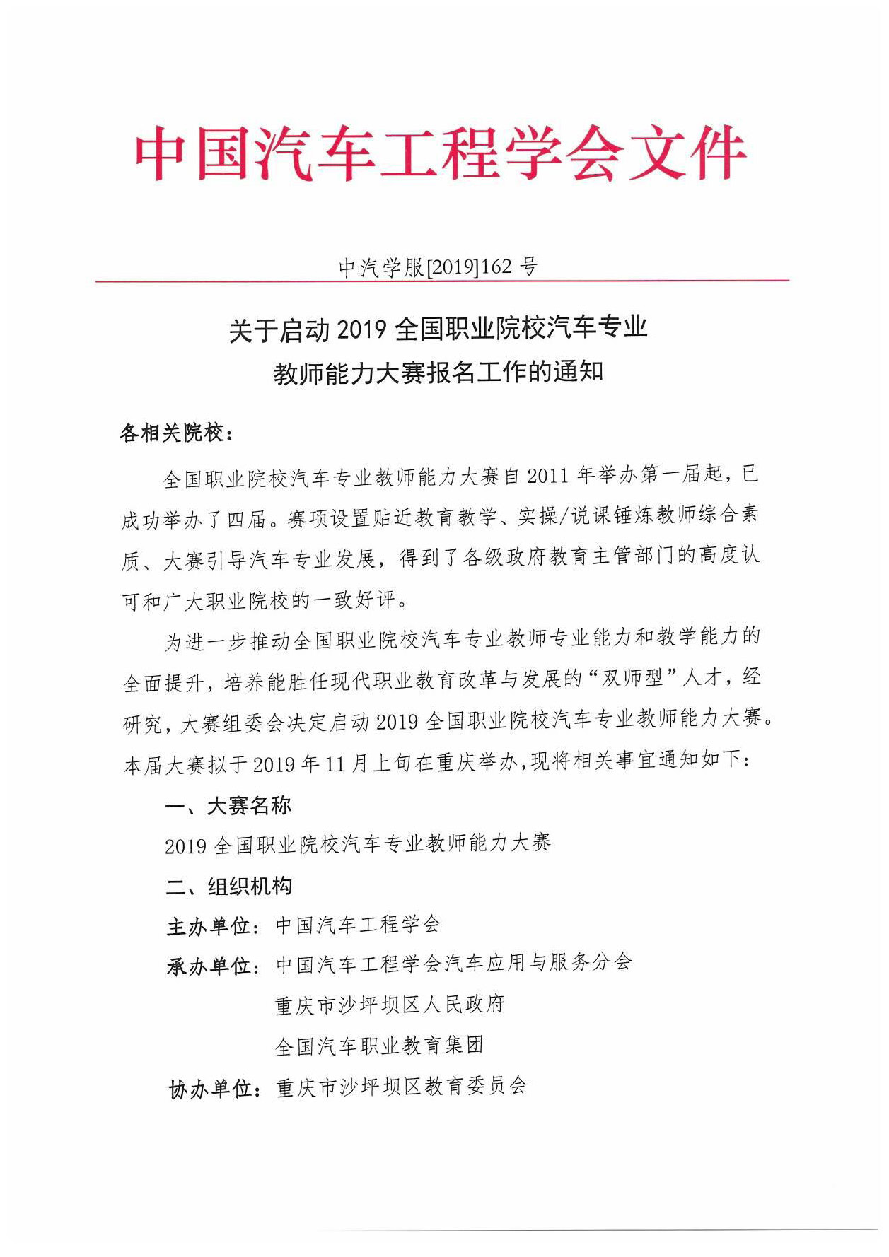 2019全國職業(yè)院校汽車專業(yè)教師能力大賽-鈑金賽項報名進行時 2019-09-12 7162 由中國汽車工程學會主辦,中國汽車工程學會汽車應用與服務分會、重慶市沙坪壩區(qū)人民政府、全國汽車職業(yè)教育集團承辦,珠海市龍神有限公司協(xié)辦的“2019年全國職業(yè)院校汽車專業(yè)教師能力大賽--鈑金維修賽項”報名工作開始了。。。
