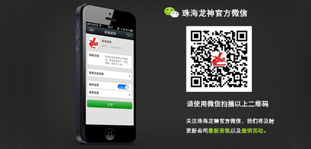 珠海龍神官方微信敬請關注! 2013-09-18 16647 珠海市龍神有限公司公共微信號已申請成功,請大家多多關注!掃描二維碼,也可直接搜索公眾微信號“珠海龍神”,我們將不定期發(fā)布公司最新資訊。您也可以發(fā)消息和我們進行互動。查看歷史消息收看您錯過的動態(tài)新聞,讓您第一手掌握最新動態(tài)。