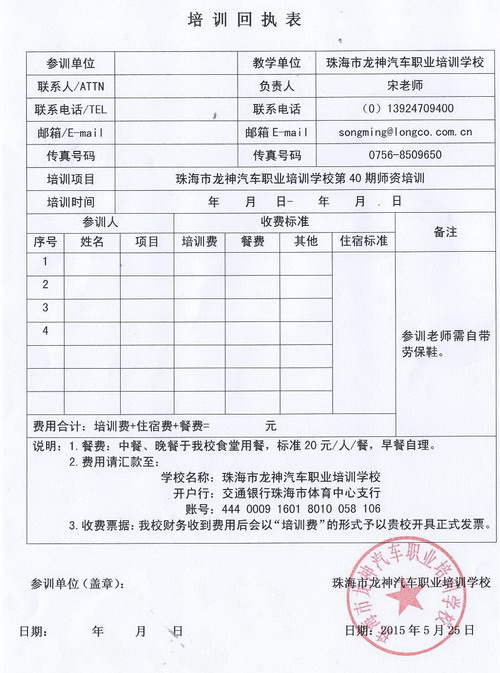 3、報名回執(zhí)表需在培訓開始前3日,回傳至我校。