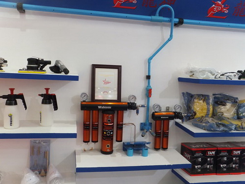 本次展出的產(chǎn)品有:鋁合金修復(fù)套裝、耐溶劑噴壺、意大利威彩噴槍、鈑金修復(fù)套裝、高精密干燥過濾器、法國(guó)佩釜快速接頭、壓縮空氣供氣管路等。